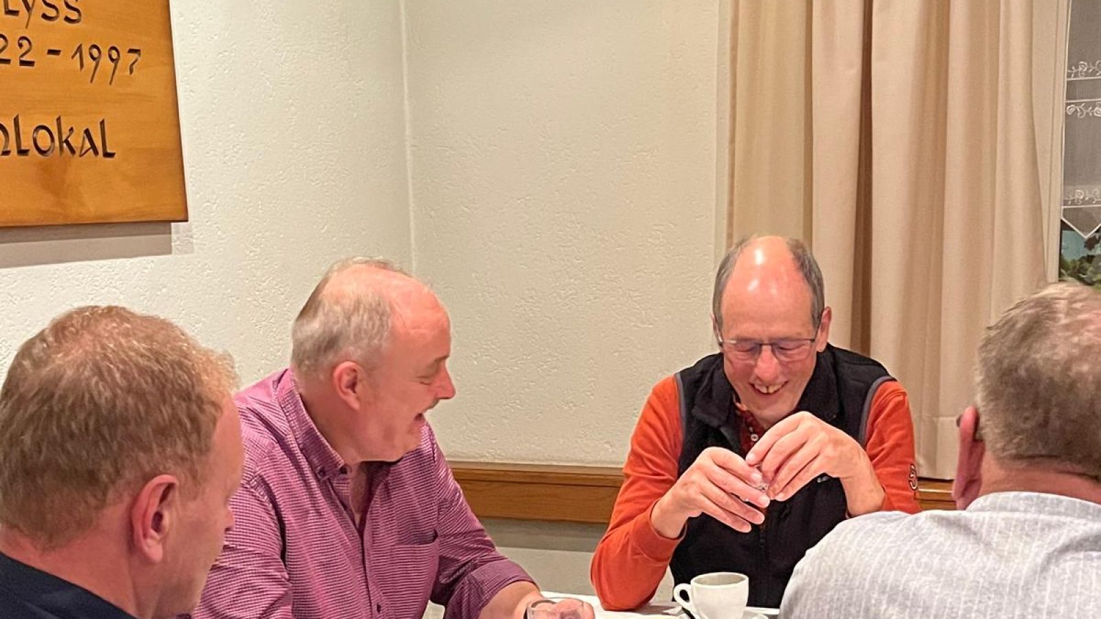 Wir freuen uns schon jetzt auf das Wildessen im Jahr 2025 und hoffen, dass die Beteiligung wieder so erfreulich sein wird. Auf ein baldiges Wiedersehen! ■ (Bild: Zufriedene Teilnehmende, von links: Thomas Benninger, Hans Schwab und Hansruedi Schneider lachen über einige Anekdoten.)