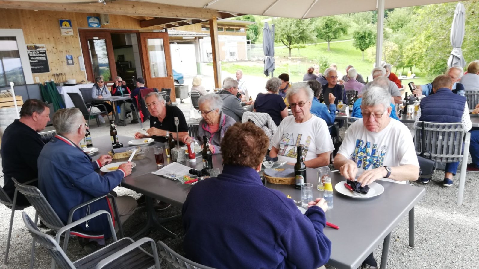 So wie es oben beschrieben ist, haben gegen 20 Pensionierte das schöne Wetter, die einmalige Aussicht und das gute Essen beim schon bald traditionellen und beliebten Anlass im Jochental genossen. Der Familienbetrieb mit eigenen Schafen und dem grossen Weingut entlang des Sees bietet entsprechend eigene Produkte an. Zum gelungenen Anlass haben diesmal Fritz und Alfons beigetragen, welche auf der Tuba, der Handorgel und dem Schwyzer Örgeli ihr Bestes zur Unterhaltung aller Gäste beigetragen haben. Einen grossen Dank verdient einmal mehr unser Präsident und Organisator Heinz Bommer. ■