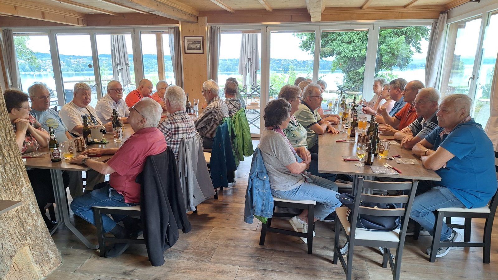 Das Wetter war an diesem Mittag eher durchzogen, sodass die Vereinigung im Innenteil des Restaurants Platz nehmen durfte. Nach einem gut mundenden Mittagessen begrüsste Obmann Heinz Bommer die illustre Gesellschaft. Er freute sich über das zahlreiche Erscheinen und wies auf den Tagesausflug im August hin, wo es von Frauenfeld über Heidegg nach Beinwil geht mit anschliessender Schifffahrt auf dem Hallwilersee. Anschliessend haben Alfons an der Handorgel und am Schwyzerörgeli und Fritz an der Tuba für die nötige Unterhaltung gesorgt. Einmal mehr ein gelungener und unterhaltsamer Anlass. ■ (Tolle Beteiligung am traditionellen Anlass im Restaurant Jochental.) (Bild: Alfons Eigenmann)